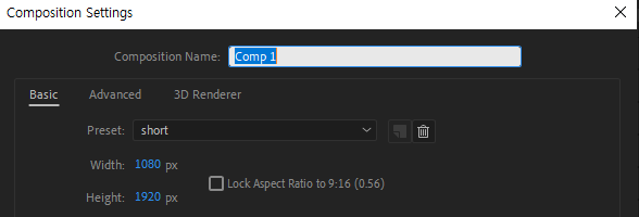 우선 Compostion Settings 에서 사이즈를